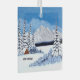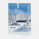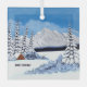 Ein Ferienschmuck mit einer schönen Winterlandschaft inklusive schneebedeckter Berge, Evergreens und rustikaler Hütte. Bilder und Text können angepasst, ersetzt oder gelöscht werden. Original-Kunstwerk von W.B.