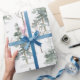 Schneebedeckte Wintergrün- und Braunbäume nahtlos Weihnachtsmuster.