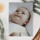 Elégante carte de faire-part bébé pendant les vacances avec une police de script qui dit "si joyeux" au-dessus de la photo de votre nouveau-né. Fonctionne mieux avec une image horizontale.