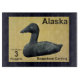 Eine Briefmarke aus einer mythischen unabhängigen Alaska mit einer Seifenschnitzerei einer Eiderente. Der Hintergrund ist eine hirngebräunte Elchenhaut. Dies ist ein digitales Rendering, kein echtes Seifenobjekt. Der Gemeinsame Eider, Somateria mollissima, ist die größte Ente in Europa und Nordamerika (mit Ausnahme der Muskovy Duck, die nur in einem wilden Staat im südlichsten Texas Nordamerika erreicht). Der Eider ist über die nördlichen Küsten Europas, Nordamerikas und Ostsibiriens verteilt. Er züchtet sich in der Arktis und einigen nördlichen gemäßigten Regionen, aber in gemäßigten Zonen Winter etwas weiter südlich, wenn er große Herden an den Küstengewässern bilden kann. Es kann mit Geschwindigkeiten bis zu 70 km/h (113 km) fliegen. Der Eider zeichnet sich durch seine sperrige Form und seine große, keilförmige Rechnung aus. Das Männchen ist unverwechselbar, mit seinem schwarz-weißen Gefieder und seiner grünen Nackte. Das Weibchen ist ein brauner Vogel, kann aber nach Größe und Kopfform von allen Enten, mit Ausnahme anderer Eiderarten, leicht unterschieden werden. Der Ruf dieser Ente ist ein angenehmes "ah-ooo". Die Art ist oft leicht zugänglich. Die Niederschläge der europäischen, ost-nordamerikanischen und asiatisch/Western nordamerikanischen Rennen unterscheiden sich durch geringe Unterschiede in der Absturz- und Wechselfarbe. Diese Art taucht für Krebstiere und Weichtiere ein, wobei Muscheln ein beliebtes Nahrungsmittel sind. Der Eider wird Muscheln essen, indem er sie ganz schluckt; die Muscheln werden dann in ihren Magen zerkleinert und ausgeschieden. Wenn die Eider eine Krabbe isst, entfernt sie alle ihre Klauen und Beine und fressen dann den Körper in ähnlicher Weise. Es ist reich an Populationen von etwa 1,5-2 Millionen Vögeln in Nordamerika und Europa, und auch große, aber unbekannte Zahlen in Ostsibirien. Eine besonders berühmte Eiderkolonie lebt auf den Farne-Inseln im Northumberland, England. Diese Vögel waren Gegenstand eines der ersten Vogelschutzgesetze, das Saint Cuthbert im Jahr 676 eingeführt hat. Etwa 1.000 Paare nisten dort noch jedes Jahr. Da St. Cuthbert der Schutzheilige von Northumberland ist, war es natürlich, dass das Eiter als Emblemvogel des Landkreises ausgewählt werden sollte; die Vögel werden in der Gegend immer noch als Cuddy-Enten bezeichnet, wobei "Cuddy" die bekannte Form von "Cuthbert" ist. Die Gemeinsame Eider ist eine der Arten, auf die das Übereinkommen zur Erhaltung der afrikanisch-eurasischen wandernden Wasservögel (AEWA) Anwendung findet. Eider sind koloniale Züchter. Sie nisten auf Küsteninseln in Kolonien von weniger als 100 bis über 10.000 bis 15.000 Individuen. Weibliche Eier zeigen häufig ein hohes Maß an natürlicher Philosophie, wo sie auf derselben Insel, wo sie geschlüpft waren, zur Rasse zurückkehren. Dies kann zu einem hohen Maß an Relation zwischen Individuen führen, die sich auf derselben Insel nisten, sowie zur Entwicklung von kinderbasierten sozialen Strukturen. Diese Beziehung hat wahrscheinlich eine Rolle bei der Evolution kooperativer Zuchtverhalten unter Eidern gespielt. Beispiele für diese Verhaltensweisen sind das Eierlegen in den Nestern von verwandten Personen und die Kinderkrippe, in der weibliche Eier sich zusammentun und die Arbeit der Aufzucht von Enten teilen. Das Eidernest ist nah zum Meer gebaut und von dem gefeierten Absturz gesäumt, der von der Brust des Weibchens abgespült wird. Dieses weiche und warme Futter wurde lange geerntet, um Kissen und Steppdecken zu füllen, aber in den letzten Jahren wurde weitgehend durch die Ablösung von einheimischen Gänsen und synthetischen Alternativen ersetzt. Auch wenn die Kissen oder Quilts heutzutage selten sind, wird die Ernte von Eidernfällen fortgesetzt und ist nachhaltig, wie es nach den Enten möglich ist, das Nest ohne Schaden für die Vögel verlassen.