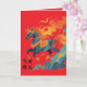 To the left of the running horse are bold black calligraphic characters, 飞黄腾达. Mythic, fiery, and elegant.