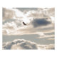 An einem windigen Tag steigt ein majestätischer, kahler Adler, gestützt durch einen dramatischen wolkigen Himmel.