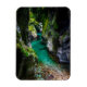 Der rechteckige Foto-Magnet mit Tolmin-Schlucht mit moosbedeckten steilen Felsen und prächtigem blauem Wasser im Soca-Tal, in der Nähe von Kobarid in Slowenien.