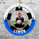 Mit diesem Soccer Blue White Team Colors Ornament feiern Sie die sportlichen Triumphe Ihres Kindes in der Jugendliga, in der Uni oder im High School Fußball. Personalisieren Sie mit dem Foto, dem Namen und dem Jahr Ihres Kindes. Eine tolle Geschenkidee für Oma und Opa.