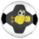 Ein gelbes Kätzchen, das einen Fußball hält, ist ein humorvolles Sportdesign für die Zeit zurück zur Schule, zu Geburtstagen und Feiertagen.