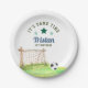 Celebrate your little rookie’s first birthday with these sporty “It’s Game Time” soccer paper plates! Featuring a bold soccer ball design, playful green field accents, and fun athletic typography, these plates add the perfect game-day energy to your party table. Ideal for toddlers who love balls and movement, these durable plates are great for cake, snacks, and party treats. A fun and easy match for your soccer-themed 1st birthday setup!