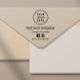 Promotionale Briefmarke für Ihr Unternehmen mit Ihrem Logo, Ihrem Firmennamen in fett minimaler moderner Typografie und Ihren Facebook und Instragram Social Media Handles für Kunden und Kunden, um mit Ihnen online zu verbinden.