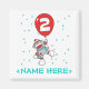Zweiten Geburtstag niedlicher Sockenaffe in Rot und Türkis, hängt an einem roten Ballon mit großer Zahl 2.