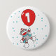 Erster Geburtstag niedlicher Sockenaffe in Rot und Türkis hängt an einem roten Ballon mit großer Zahl 1.