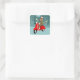 Karo out Socken Affe ist auf seinem Vintagen roten Roller, während Sie eine Welle Hallo! Diese Socken-Affen-Illustration wäre für Vespa und Affenfans gleichermaßen geeignet.