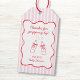 Soda Bottle Bow Pink & Red Wavy Baby Shower Geschenkanhänger
