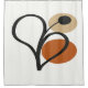 This piece leans into organic minimalism, with a bold black curvilinear line forming a stylized plant or leaf shape. The off-white background and generous negative space give it a clean, airy feel, while the rough texture of the line adds subtle depth. The small black circle at the tip evokes a bud or seed—perfect for a collection that blends nature with abstraction. A terracotta orange circle overlapping the black bud, and a warm beige circle behind the motif, adding depth and balance