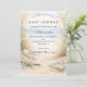 A soft coastal design featuring an elegant oval wreath composed of seashells, oysters, starfish, sea glass, and delicate dune grasses. Neutral sandy tones blend beautifully with muted blue accents, creating a refined seaside aesthetic that feels airy and sophisticated. The warm ivory background enhances the natural textures while keeping the layout clean and graceful. Perfect for a beach-inspired celebration with timeless, understated charm.