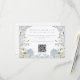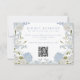 Elegant wedding response card with a QR code and a soft blue watercolor floral design.