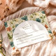 A sophisticated botanical design featuring rich green foliage and soft ivory blooms, framed within a timeless arched layout. The deep, nature-inspired tones bring a sense of depth and refinement, while the clean typography keeps the overall look elevated and effortless.