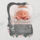 Diese Fotokarte für Taufe Die Einladung enthält ein elegantes Layout von weichen rosa Erbsen, ein Spitzen-Kreuz, Chalkboard-Hintergrund und den Namen Ihres Kindes in einem hübschen Schriftart.