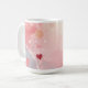 A dreamy blend of pastel pink, peach, and blue flows across the canvas, scattered with hearts, golden circles, and star-like accents.