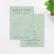 Erhalten Sie eine Produktsichtkarte mit Ihrer Marke in einem modernen Script-Schriftart auf einem weichen, hellgrünen Hintergrund. Anpassbarer Text und Logo auf der Rückseite.