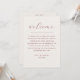 A clean and modern wedding timeline card designed with a soft ivory background and deep burgundy typography. The layout combines a flowing script headline with structured text, creating a balanced look that feels both elegant and easy to read. The front side features a clear wedding weekend schedule, including rehearsal dinner, ceremony, reception, and post wedding brunch. The organized layout helps guests quickly follow the timeline without confusion. The reverse side includes a warm welcome message, adding a personal touch. This card works especially well for modern weddings, destination celebrations, and full wedding weekend events. The soft ivory background keeps the design clean and versatile, making it a natural fit for a wide range of settings, from classic venues to understated, elegant celebrations. Available as both a printed card and a digital download.