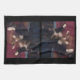 Soft kitty Pfoten sind das erste, was Sie auf dem Original Foto einer Kalico Katze auf diesem Küchentuch sehen. Die meist schwarz-braune Katze liegt auf einer dunkelroten und braunen Decke vor einem dunklen Hintergrund, und ihre weißen Pfoten heben sich hervor und breiten sich vor ihr aus, wobei die Mitte zwei sich überkreuzten. Das weiße Fell auf ihrer Brust führt zu ihrem Gesicht, mit den Augen, die auf etwas im Raum fixiert sind.
