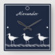 soft navy Sand Pipers on white PILLOW Quadratische Wanduhr