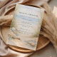 A refined coastal bridal shower design featuring an elegant oval wreath of seashells, oyster shells, starfish, and soft sea glass accents. Neutral sandy tones blend with muted ocean blues and delicate dune grasses to create a serene seaside aesthetic. The airy parchment background enhances the natural textures while maintaining a graceful, elevated look. Perfect for a beach-inspired celebration with timeless coastal charm.