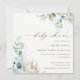 Soft Pastel Blue Green Foliage Baby Dusche laden e Dankeskarte