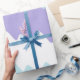 A smooth abstract pattern featuring flowing wavy stripes in soft light blue, lavender, and white. The gentle curves create a calm and airy pastel look.