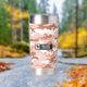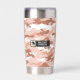 Show your pride with this stylish rose gold camouflage design, featuring the personalized text and the custom logo. Perfect for anyone who appreciates military aesthetics or wants a unique, fashionable pattern for their daily hydration. The soft rose gold and white camouflage, accented with subtle polka dots, creates a chic and modern look that stands out. This durable and eye-catching water bottle is ideal for keeping your beverages at the perfect temperature while showcasing your personal style. Make a statement with this blend of military-inspired design and contemporary fashion.