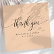 Mit einer Touch moderner Eleganz bedanken Sie sich. Diese weiche Peach Dankeschön-Karte verfügt über einen minimalistischen Kalligraphie-Script-Schriftart, der eine zeitlose und herzliche Botschaft erzeugt. Das gepflegte Design behalte den Fokus auf Ihre aufrichtige Wertschätzung und macht Ihren Gästen einen bleibenden Eindruck. Diese vielseitige Karte fügt sich perfekt in Ihr minimales Hochzeitstil ein und verbindet sich mühelos mit romantischer, schicker, moderner oder raffinierter Ästhetik. Personalisieren Sie es mit Ihren Namen und eine herzliche Nachricht, um ein wirklich besonderes Dankeschön für Ihre Lieben zu schaffen.
