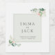 Delicate blush pink watercolor flowers and soft green leaves form an elegant frame around the couple’s names, lending this romantic wedding wine label. The timeless botanical design blends vintage inspired sophistication with a fresh, pastel palette perfect for enhancing a garden party table, autumn celebration, or rustic elegant wedding. The classic serif names, highlighted by the wedding date, bring a meaningful, heartfelt touch that makes this detail a memorable expression of appreciation at your event. The refined, soft color scheme and botanical artistry ensure your decor feels both inviting and unique. Ideal for those who love timeless, garden inspired celebrations.