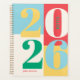 Artful and bold, this personalized planner spiral notebook features a bold five color design with large Arabic numerals to denote the year and two areas of text for personalization with the notebook's use (planner, notes, school, etc.) and the user's name. The backside of the notebook coordinates with the same color blocks and text to help return the book to its owner if lost.