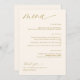 Offrez-vous une réception de mariage avec notre menu Soft and Romantic Gold Cream Wedding Reception Menu. Rayonnant de délicates teintes crème et orné de subtiles touches dorées, ce menu incarne le parfait mélange de raffinement contemporain et d'affection intemporelle. L'écriture moderne raconte vos sélections culinaires avec un air de sophistication, tandis que le design minimaliste assure que votre menu brille comme la pièce maîtresse de votre célébration culinaire. Un texte simple mais élégant présente chaque plat, permettant aux saveurs de briller en harmonie avec l'opulence sobre du design. Ce menu est plus qu'une liste de cours, c'est un témoignage du soin et de l'attention que vous avez apporté à chaque détail de votre événement. Un message de remerciement sincère fait honneur à la base et exprime votre gratitude à vos invités estimés pour avoir participé à votre célébration. Choisissez notre menu Soft and Romantic Gold Cream Wedding Reception Menu pour enrichir votre réception avec une touche d'amour et d'élégance. Ce n'est pas seulement un menu, c'est un reflet de votre voyage et une introduction à l'inoubliable fête qui vous attend.