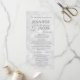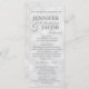 Dieses elegante Hochzeitsprogramm besticht durch ein weiches, weißes, helles Aussehen, einen Hintergrund und einen silbernen Text. Es würde für jede Hochzeit oder Veranstaltung gut aussehen. Es ist vollständig anpassbar mit Ihrem Text, und Sie können den Schriftart und die Farben ändern, um es wirklich Ihren zu machen.