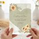 Genießen Sie mit unserer zauberhaften Hochzeitseinladung den Charme der boho elegance. Mit einem sanften, grünen Aquarellwaschuntergrund ist das Herzstück ein dunkleres, grün grün wirkendes Herz, das mit Haufen weicher gelber, brauner und schlauer grüner Sonnenblumen geschmückt ist. Der moderne Script-Schriftart und der saubere, lässige Body Text bieten eine zeitgemäße Touch, die Stil und Leichtigkeit perfekt miteinander in Einklang bringt. Dieses Design spiegelt das Wesentliche Ihrer Liebe wider und lädt Ihre Gäste zum Feiern in einer natürlichen Schönheit und entspannter Eleganz ein. Sonnenblumengrafik erstellt von Verya Studios. Erstellt von der einfachen Farmhouse Press.