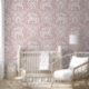 An intricate, hand-drawn rococo pattern featuring carousel horses and florals on a soft warm blush pink background. Plaster texture and a dense, symmetrical layout create an elegant, whimsical storybook feel perfect for nurseries and vintage-inspired spaces.