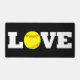 Eine lustige LIEBE-Tischmatte für jeden Softball-Spieler oder Softball-Trainer, mit LIEBE in fett weißem Text und einer Fastpech-Softball-Grafik anstelle des O. Ideal für Zuhause oder im Büro des Softball-Trainers.