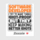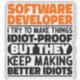 Funny Software Developer Redewendungen "Software Developer Ich versuche, Dinge idiot zu machen, aber sie Behielt, bessere Idioten zu machen". Nimm dieses lustige Software-Entwickler-Design als lustige Geschenke für eine phantastische Mutter, einen Vater oder einen Freund.