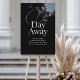 Faites une belle première impression avec cet élégant panneau acrylique noir pour votre dîner de répétition! Créé sur un acrylique élégant et brillant et doté d'un mélange moderne de polices de script et de serif, il séduit immédiatement vos invités. L'audacieuse déclaration "One Day Away" donne un ton d'excitation et d'anticipation, attirant tout le monde dans la célébration. Cette pièce sophistiquée fusionne sans effort le style avec l'élégance, élevant l'atmosphère de vos festivités pré-mariages. Avec du texte personnalisable et des couleurs arrière - plans, vous pouvez l’adapter pour compléter parfaitement l’ambiance et les couleurs uniques de votre événement !