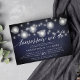 Notre dîner de répétition rustique élégant ou les invitations cocktails dans sont riches en texture d'un arrière - plan bleu minuit avec des cordes de lumières blanches et des lanternes lumineuses en papier sur le dessus, et "demain nous le faisons" dans la typographie de script de calligraphie chic. Personnalisez avec votre cérémonie la répétition et les détails du dîner de répétition sous. Inclut l'espace pour le moment de la répétition et l'adresse de l'église ou du lieu.