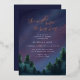 Invitation à dîner de répétition avec une aquarelle de nuit peinture ciel avec de vraies étoiles en feuille d'or rose et texte de script. Personnalisez avec vos propres détails.