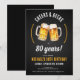 Salutations et bières Invitation de fête du 80e anniversaire. Célébrez huit décennies de grandeur avec cette invitation festive "Cheers and Beers" à l'occasion du 80e anniversaire ! Doté de tasses à bière audacieuses, d'accents rustiques et d'une combinaison élégante de noir, d'or et de blanc, ce design offre un équilibre parfait entre plaisir décontracté et sophistication classique. Que vous soyez l’hôte d’une brasserie ou d’une fête de jardin, cette invitation donne le ton pour une soirée inoubliable de boissons, de rires et de bonne compagnie. Facilement personnalisable avec tous les détails de votre événement, cet invitation ajoute une touche personnelle à votre célébration de jalon et assure que les invités sont heureux de lever un verre au grand 8-0!