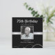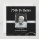 Soixante-quinzième invitations modernes décontractées pourtant chiques de dîner d'argent et d'anniversaire de noir pour les hommes ou des femmes avec ou sans la photo -- Ajoutez votre photo et customisez le nom, la date, et les détails pour créer vos propres invitations personnalisées uniques de photo de partie. Aucune photo -- aucun problème, ne cliquent sur juste "l'image claire" et vous avez toujours une belle invitation personnalisée prête à aller "comme est." Facilement customisé pour toute occasion spéciale -- partie de retraite, cocktail, fête de vacances, nouvelles années événements party, d'enterrement de vie de jeune garçon, d'entreprise ou de charité -- cliquez sur juste la "personnaliser il" pour changer les détails pour adapter à votre célébration spéciale d'étape importante -- 21ème, 30ème, quarantième, quarante-cinquième, cinquantième, cinquante-cinquième, soixantième, soixante-cinquième, soixante-dixième, soixante-quinzième, quatre-vingtième, 85th, quatre-vingt-dixième, quatre-vingt-quinzième, 100th. ** NOTE : Classé pour 5,25 x 5,25 cartes CARRÉES d'invitation -- d'autres tailles et styles disponibles dans la galerie.