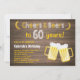 Soixantième invitation rustique d'anniversaire d'acclamations et de bières. Anniversaire adulte. Anniversaire de bière pour les hommes. Arrière - plan en bois rustique. Cru de pays rétro. Pour davantage de personnalisation, cliquez sur svp la "personnaliser il" bouton et utilisez notre outil de conception pour modifier ce modèle.