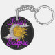 Rundschwarzer Schlüsselanhänger mit Vintager Sonne und Mond zum Feiern der Sonnenfinsternis 2024