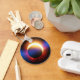 Eine Sonnenfinsternis (der Mond, der die Sonne bedeckt), mit dem typischen "Linsenflare"-Effekt in blau.