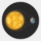 Die Erde wird von der Sonne mit Jumperkabeln aufgeladen, um sich mit den Erdästen zu verbinden, oben rot, unten schwarz.