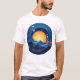 Eine kreative abstrakte Darstellung eines Sonnenuntergangs über Berggipfeln, der mit lebhaften Farben strahlt.