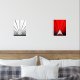 Un motif classique de style art déco, créé en noir, blanc et rouge. Un motif emblématique du soleil se levant derrière un bâtiment en forme d'art déco stylisé. Un design simple mais élégant, fidèle à l'époque.