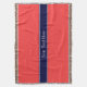 Solid Coral Red, Navy Blue Ribbon Name Monogram Decke